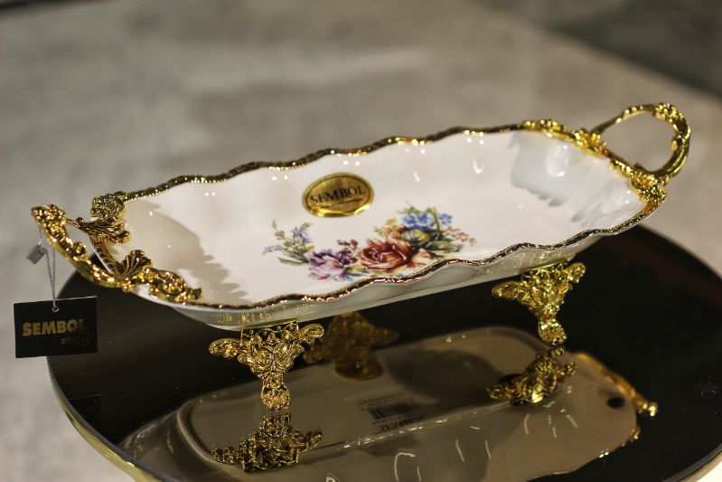 With golden covering brass handles porcelain plates.Please get contact for more items on the serie.