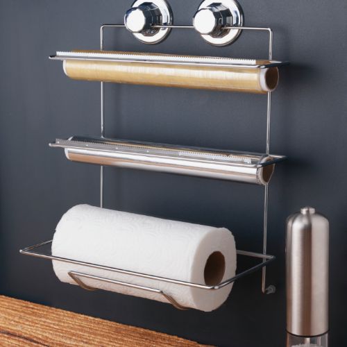 Dispenser, Has 3 Sections for Paper Towel Roll, Stretch Film Roll and Foil Roll, Color Chrome, Size 19x30x38 cm